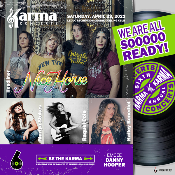 Our 6th Annual Karma Concert will be held on Saturday, April 23, 2022 at the Leduc Recreation Centre.