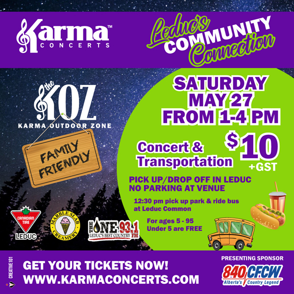 Karma Concerts creates unique local (Leduc, AB and surrounding areas) entertainment events that connect, engage, build memories, and generate funds in supporting music and arts program for our youth.