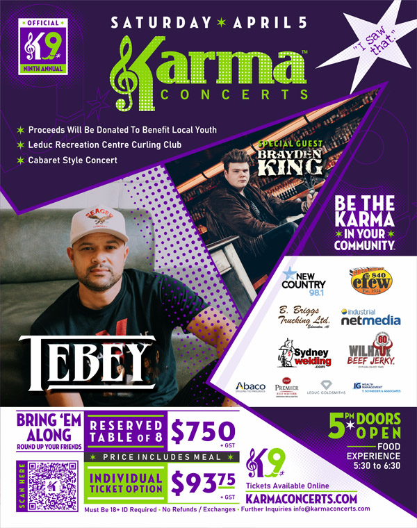 OUR HEADLINER IS TEBEY with special guest, Brayden King. It will be an awesome night, as per usual! So plan to attend!